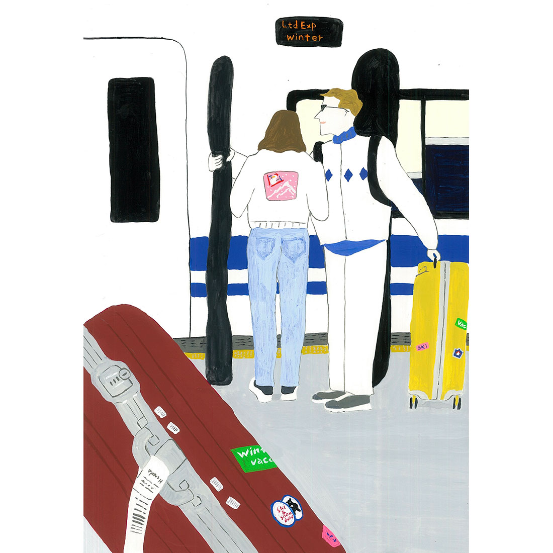 There was a painting in a foreign land, depicting a historic town crowded with many buildings with simple black lines. Ueno is also lined with many unique buildings, but what would happen if I depicted the coexistence of these buildings in a simple way, not in a descriptive way, but with a boyish feeling? I took up my brush with a very simple thought, without thinking too deeply.