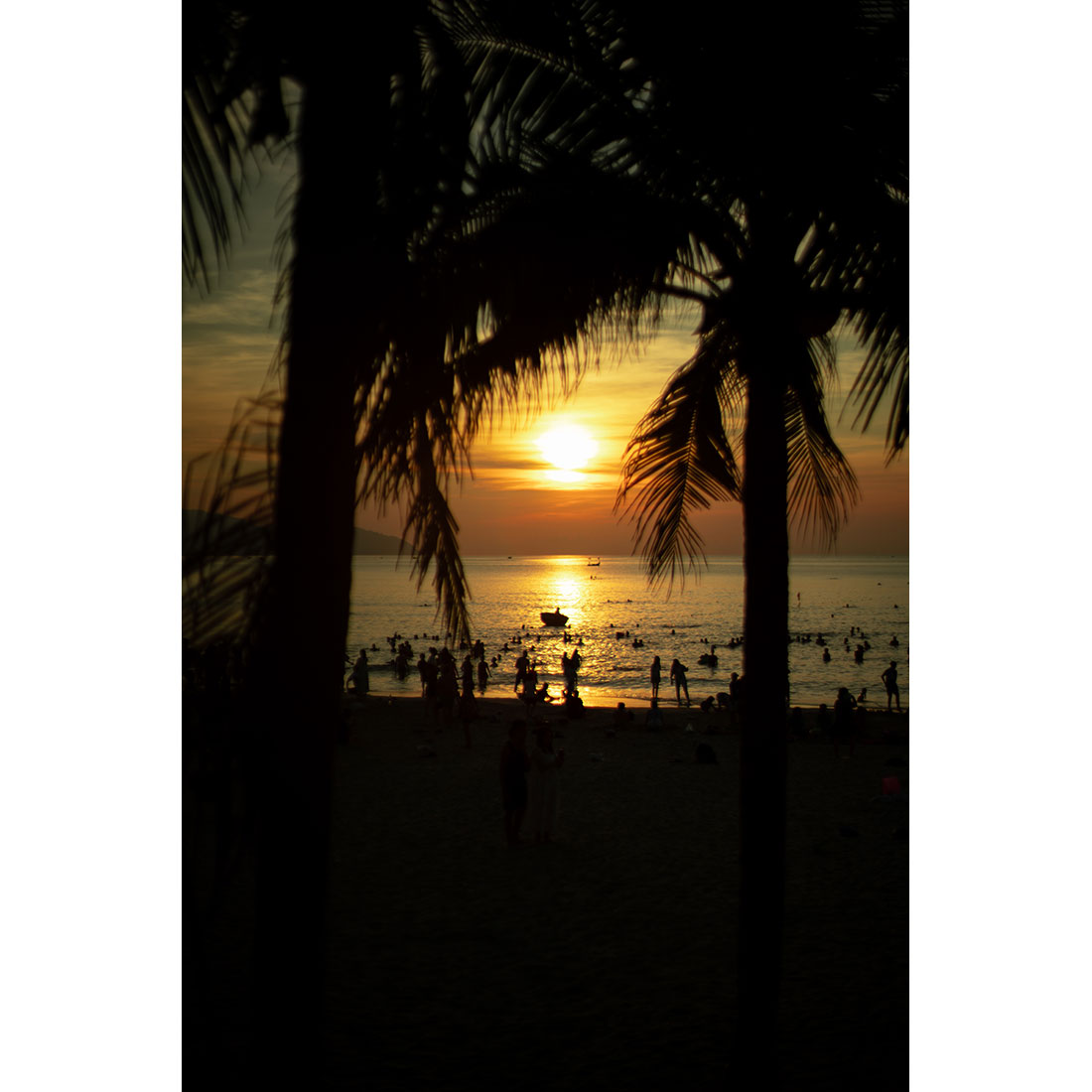 In contrast, the torii gate and pond stand silently, creating a sense of stillness.